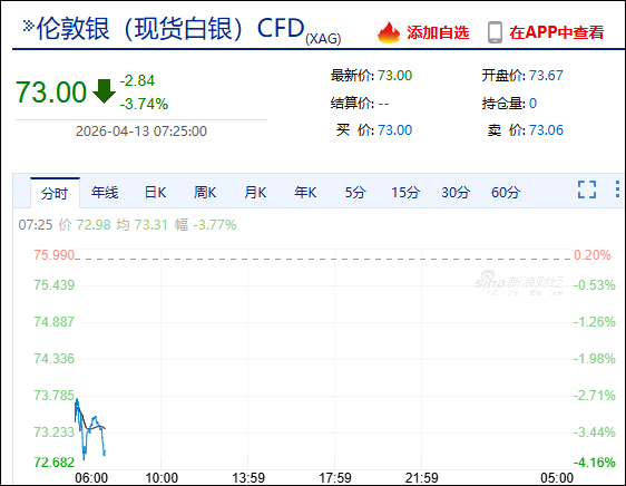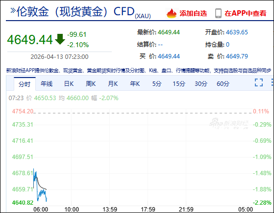 贵金属方面,现货黄金、现货白银开盘跳水。截至发稿,现货黄金跌破4650美元,报4649.44美元/盎司,日内跌2.10%。现货白银跌近4%报73.00美元/盎司。