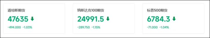 美股三大指数期货集体下挫,截至发稿,均跌超1%。